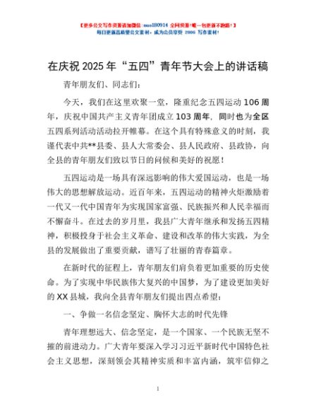 / 在庆祝2025年“五四”青年节大会上的讲话稿