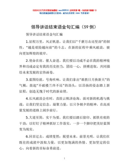 / 领导讲话结束语金句汇编(59例)