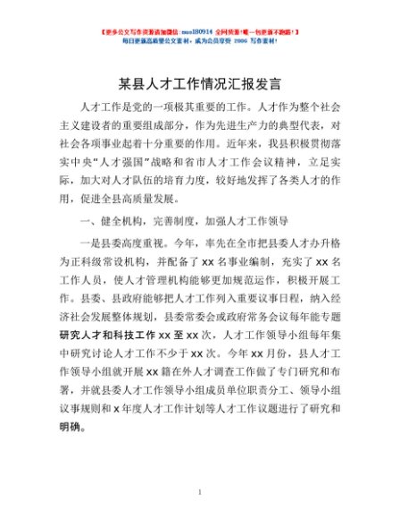 / 某县人才工作情况汇报发言