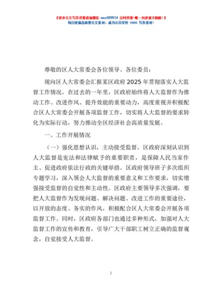 / 区政府在2025年贯彻落实人大监督工作情况汇报