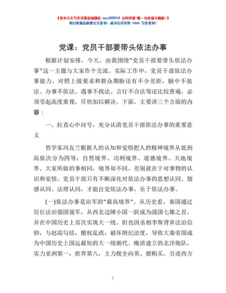 / 党课:党员干部要带头依法办事
