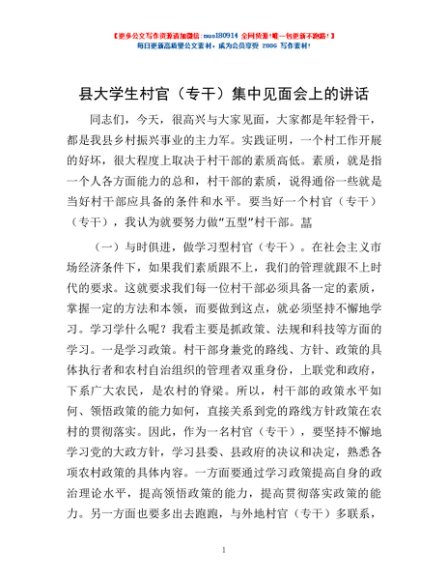 / 县大学生村官(专干)集中见面会上的讲话
