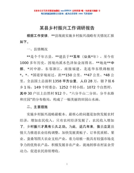 / 某县乡村振兴工作调研报告