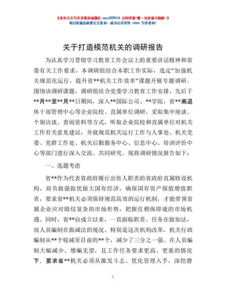 / 关于打造模范机关的调研报告