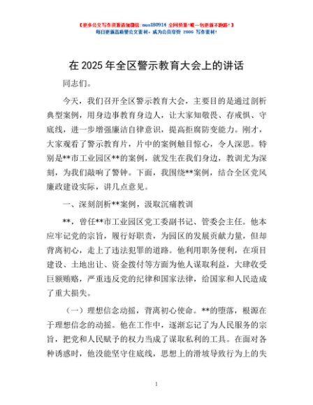/ 在2025年全区警示教育大会上的讲话