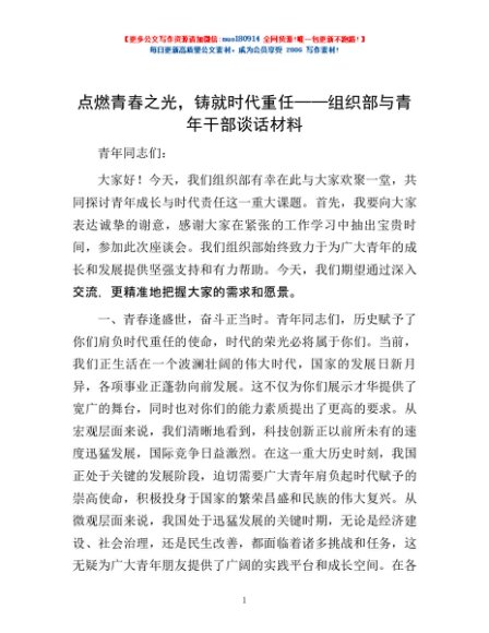 / 点燃青春之光,铸就时代重任——组织部与青年干部谈话材料
