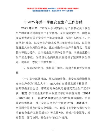 市2025年第一季度安全生产工作总结