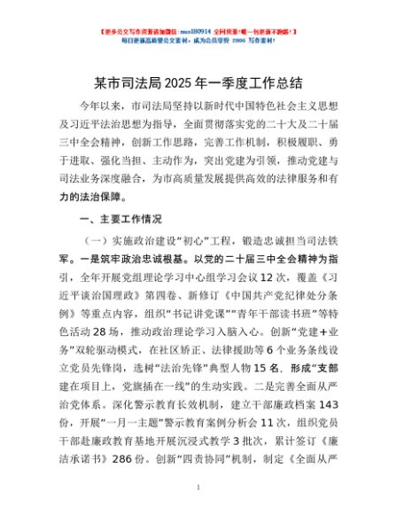 / 某市司法局2025年一季度工作总结