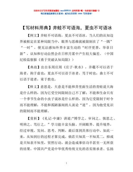 【写材料用典】井蛙不可语海,夏虫不可语冰