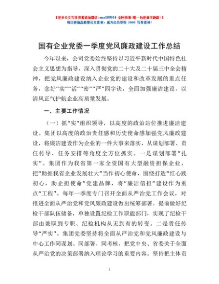/ 国有企业党委一季度党风廉政建设工作总结