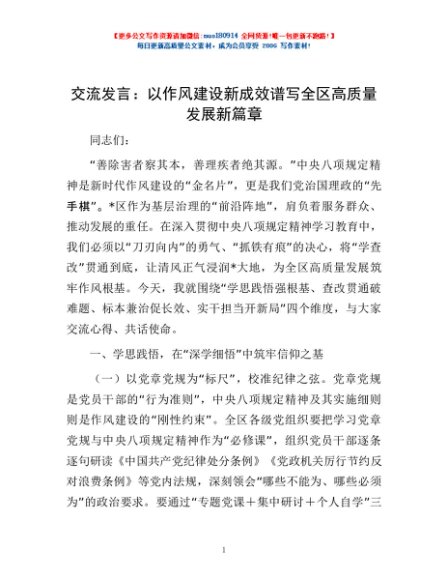 / 交流发言:以作风建设新成效 谱写全区高质量发展新篇章