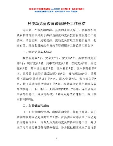 / 县流动党员教育管理服务工作总结