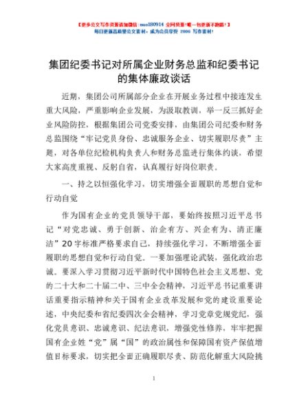 / 集团纪委书记对所属企业财务总监和纪委书记的集体廉政谈话