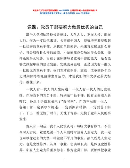 / 党课:党员干部要努力做最优秀的自己
