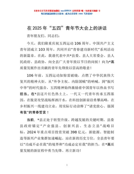 / 在2025年“五四”青年节大会上的讲话