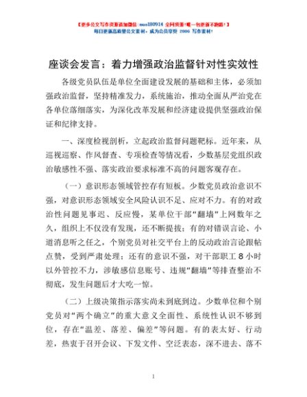 / 座谈会发言:着力增强政治监督针对性实效性