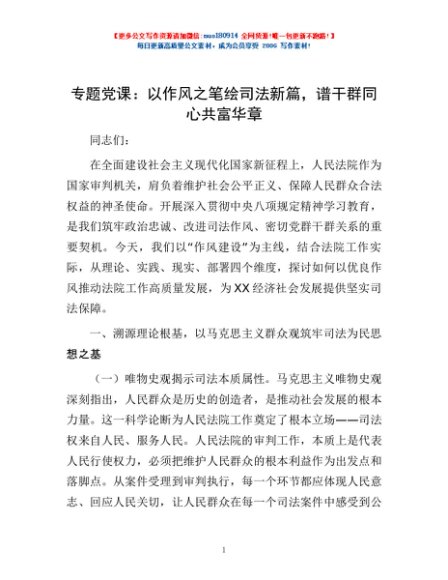 / 专题党课:以作风之笔绘司法新篇,谱干群同心共富华章