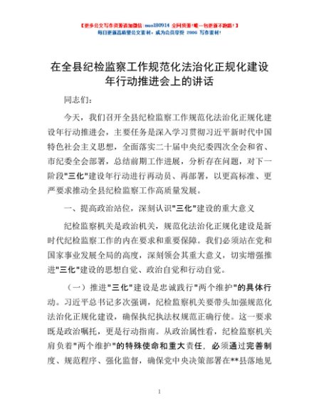 / 在全县纪检监察工作规范化法治化正规化建设年行动推进会上的讲话
