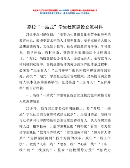 / 高校“一站式”学生社区建设交流材料