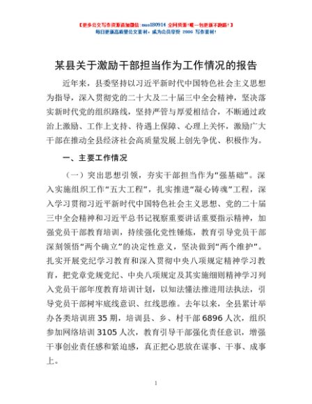 / 某县关于激励干部担当作为工作情况的报告