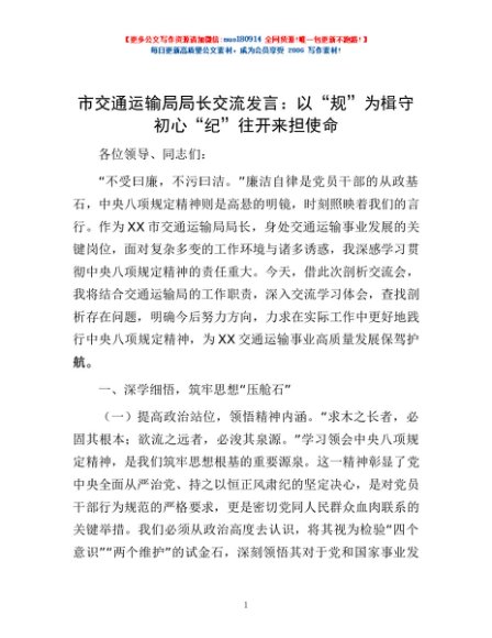 / 市交通运输局局长交流发言:以“规”为楫守初心 “纪”往开来担使命