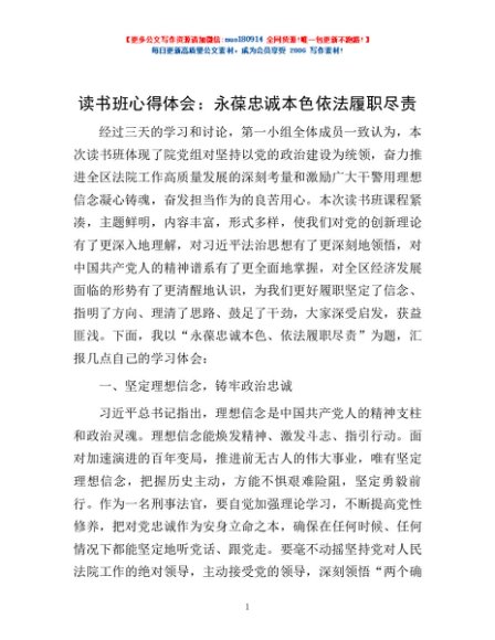 / 读书班心得体会:永葆忠诚本色依法履职尽责