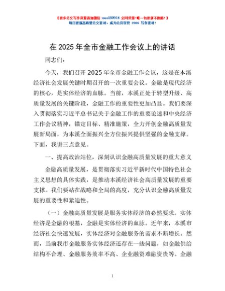 / 在2025年全市金融工作会议上的讲话