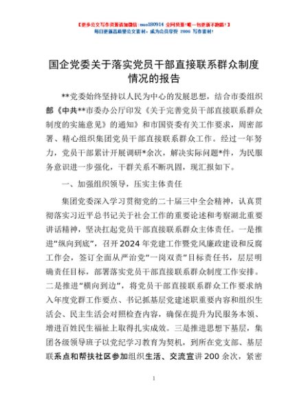 / 国企党委关于落实党员干部直接联系群众制度情况的报告