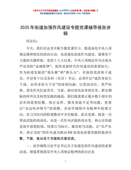 / 2025年街道加强作风建设专题党课辅导报告讲稿