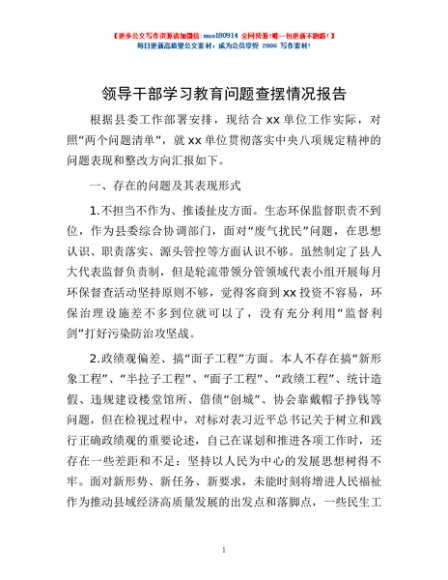 / 领导干部学习教育问题查摆情况报告