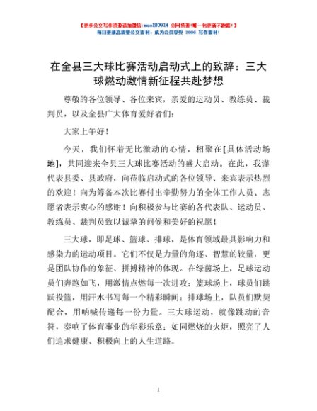 / 在全县三大球比赛活动启动式上的致辞:三大球燃动激情 新征程共赴梦想