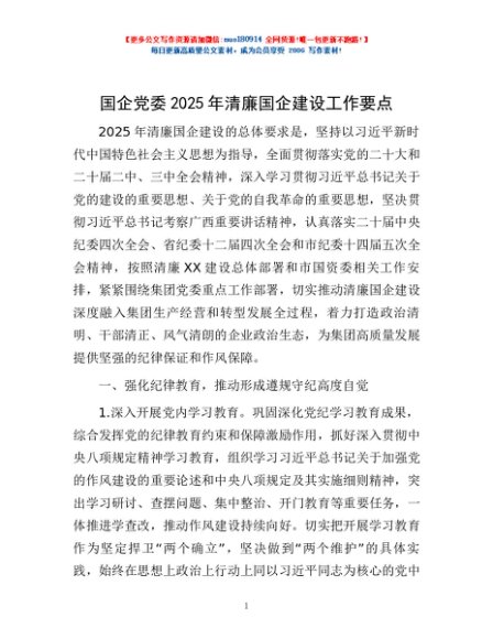 / 国企党委2025年清廉国企建设工作要点