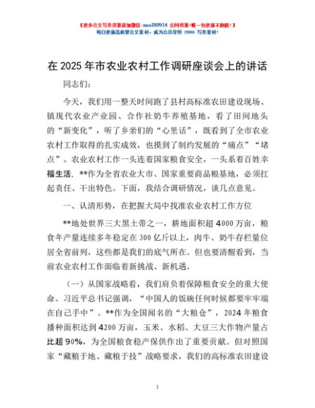 / 在2025年市农业农村工作调研座谈会上的讲话