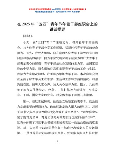 / 在2025年“五四”青年节年轻干部座谈会上的讲话提纲