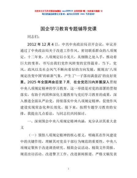 国企学习教育专题辅导党课