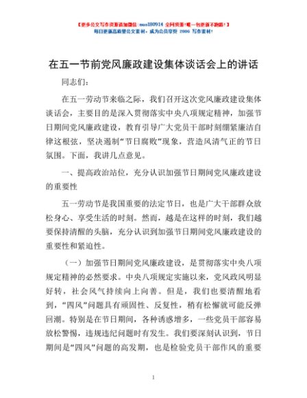 / 在五一节前党风廉政建设集体谈话会上的讲话