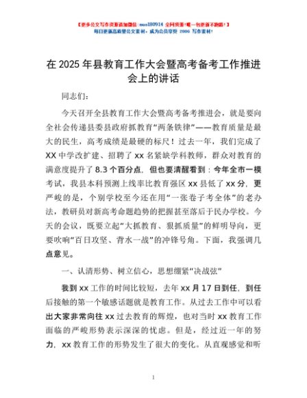 / 在2025年县教育工作大会暨高考备考工作推进会上的讲话