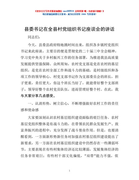 / 县委书记在全县村党组织书记座谈会的讲话