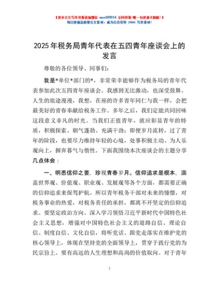 / 2025年税务局青年代表在五四青年座谈会上的发言
