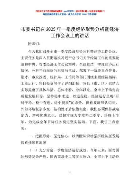 / 市委书记在2025年一季度经济形势分析暨经济工作会议上的讲话