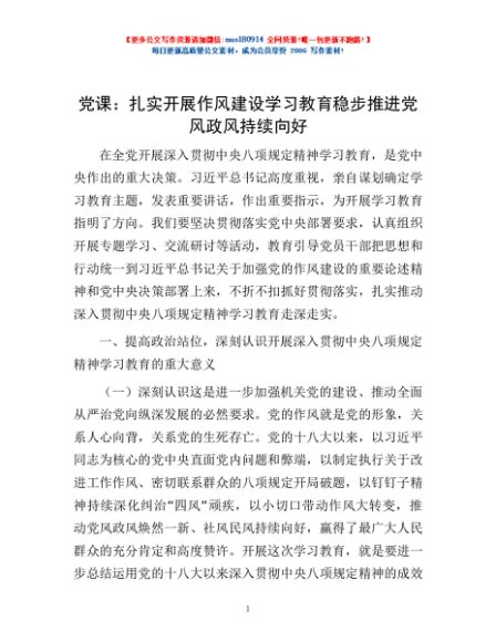 / 党课:扎实开展作风建设学习教育 稳步推进党风政风持续向好