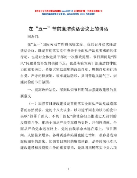 / 在“五一”节前廉洁谈话会议上的讲话