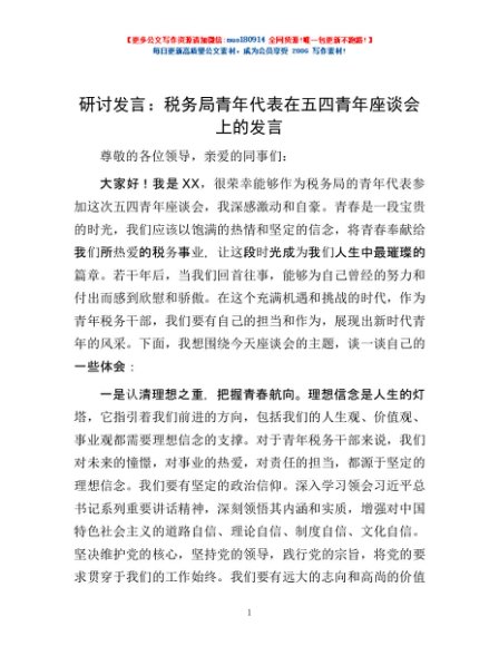 / 研讨发言:税务局青年代表在五四青年座谈会上的发言