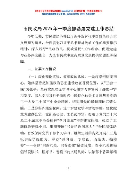/ 市民政局2025年一季度抓基层党建工作总结