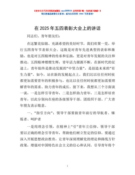 / 在2025年五四表彰大会上的讲话
