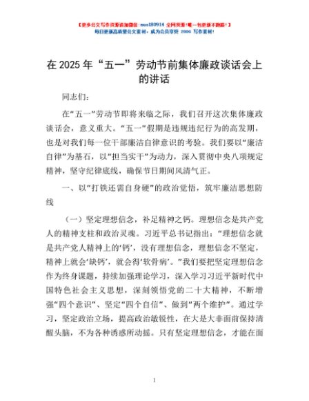 / 在2025年“五一”劳动节前集体廉政谈话会上的讲话