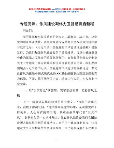 / 专题党课:作风建设凝伟力 卫健扬帆启新程
