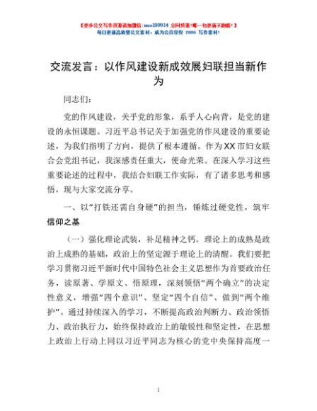 / 交流发言:以作风建设新成效 展妇联担当新作为