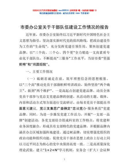 / 市委办公室关于干部队伍建设工作情况的报告