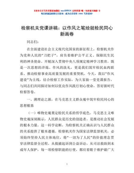 / 检察机关党课讲稿:以作风之笔绘就检民同心新画卷